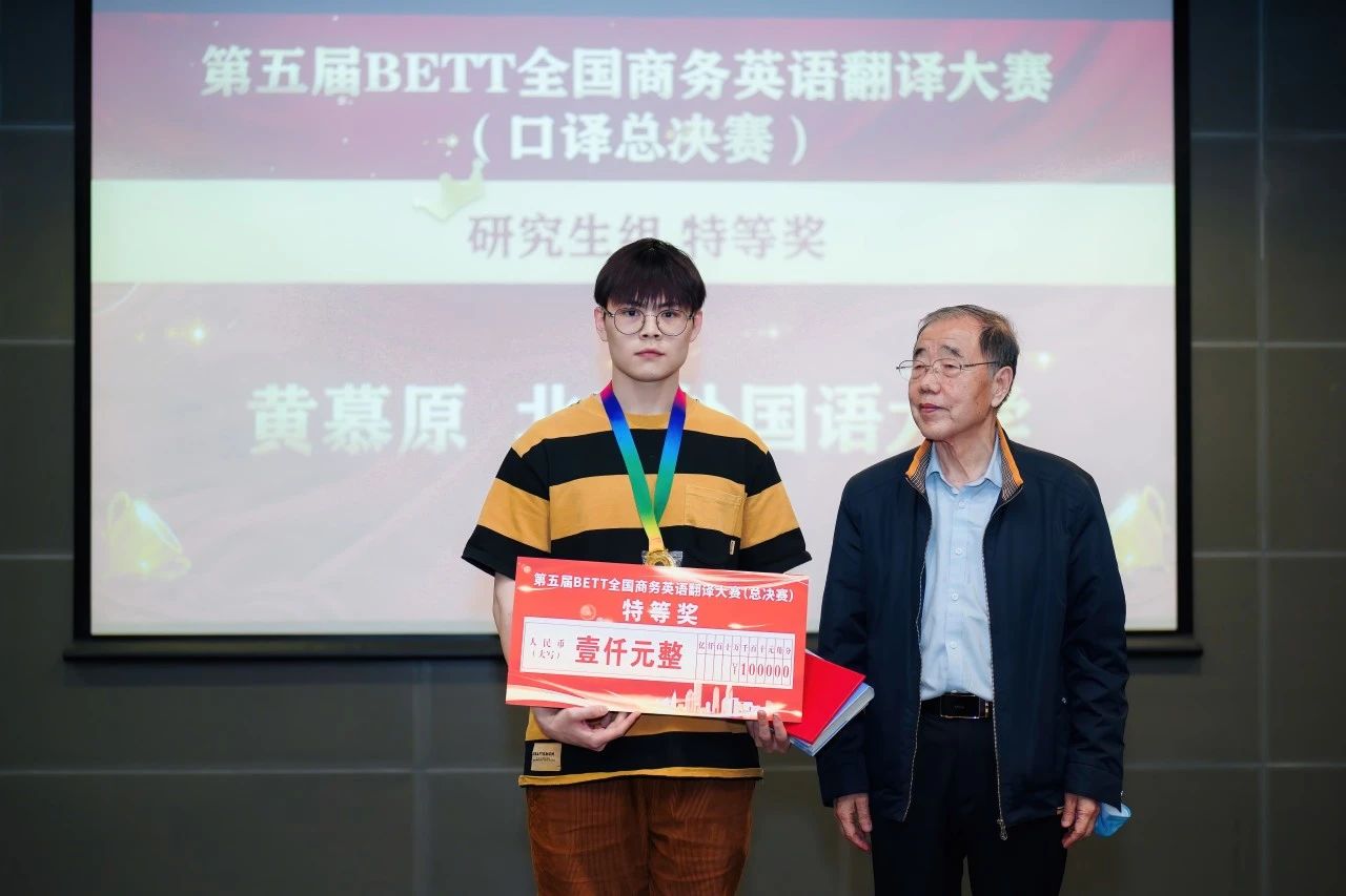 2024年4月20日,第五届BETT全国商务英语翻译大赛(总决赛)在太阳成tyc7111cc举行,我院2021级同声传译专业硕士生黄慕原代表学院参赛,以总分第一的佳绩荣获研究生组冠军(特等奖)。本次总决赛由中国城商联外研分会主办,太阳成tyc7111cc国际商学院承办,共有26个省(直辖市)的102所高校正式组织参赛,有来自近500所高校及企事业单位的1万多人次参赛。比赛分为英译汉、汉译英短文翻译两个环节,设特等奖1名、一等奖2名、二等奖4...