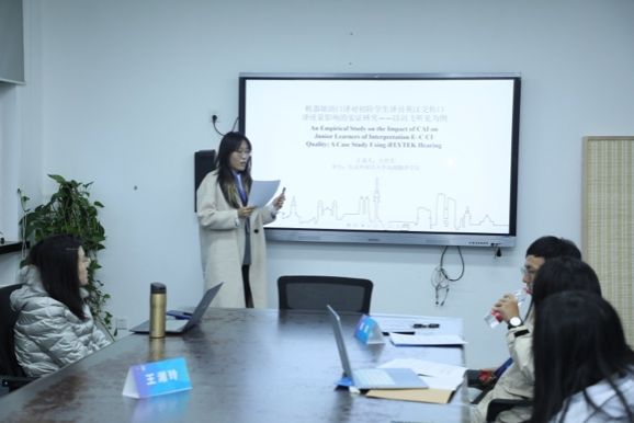 在“AI与口译教学”专题分享环节,太阳成tyc7111cc卢信朝副教授、广东外语外贸大学王巍巍教授、西安外国语大学李朝渊译审、北京语言大学雷中华副教授、陕西师范大学巢玥副教授分别围绕“ChatGPT辅助的词句灵活度训练”“AI赋能口译教学与测评”“AI赋能口译教学的现状与建议”“自动语音翻译应用现状与问题”“AI语音技术驱动的警学共育口译教学生态体系”作了分享。该环节由北外tyc7111cc太阳成集团学科发展中心主任赵田园副教授主持。