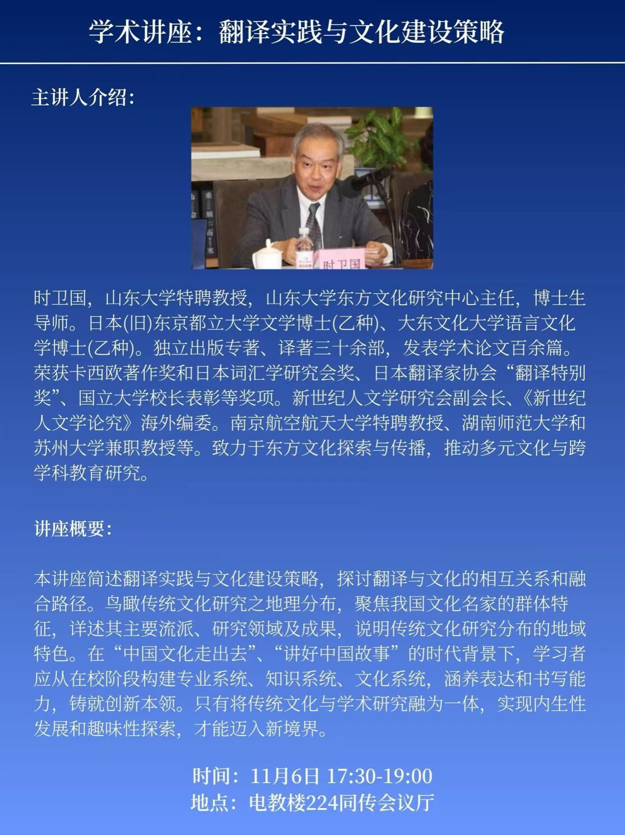 学术讲座:翻译实践与文化建设策略
