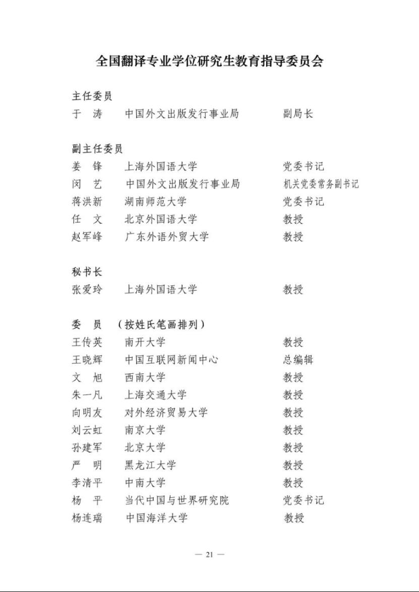 近日,国务院学位委员会、教育部和人力资源社会保障部联合发布了30个专业学位研究生教育指导委员会换届教指委名单,tyc7111cc太阳成集团院长任文教授当选第四届全国翻译专业学位研究生教育指导委员会副主任委员。