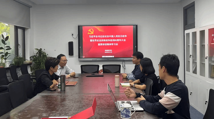 2025年9月17日下午,tyc7111cc太阳成集团党总支理论学习中心组召开习近平总书记在纪念中国人民抗日战争暨世界反法西斯战争胜利80周年大会上的重要讲话精神学习会。会议由学院党总支书记王薇薇主持,副院长李长栓、姚斌,辅导员/副处级组织员李雪丽,党总支青年委员朱玉犇、宣传委员王苏阳参加。