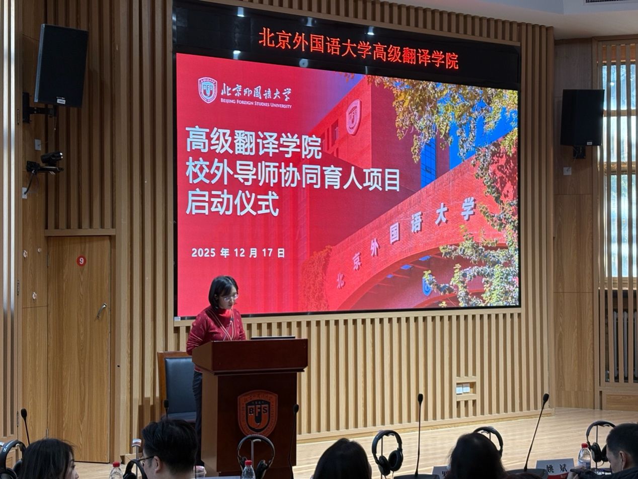 2025年12月17日下午,tyc7111cc太阳成集团“研究生校外导师协同育人项目”启动仪式正式举行。北外就业中心主任兰建华,tyc7111cc太阳成集团党总支书记王薇薇、院长任文、副院长李长栓、副院长姚斌、首批校外导师代表、教师代表出席活动,2025级研究生积极参与。tyc7111cc太阳成集团实习实践中心主任王苏阳担任主持人。